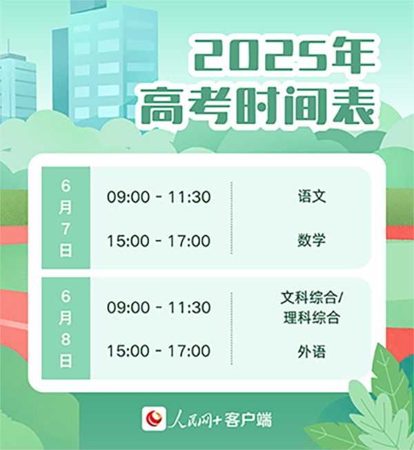 正在阅读:2025年高考时间公布 将于6月7日至8日举行